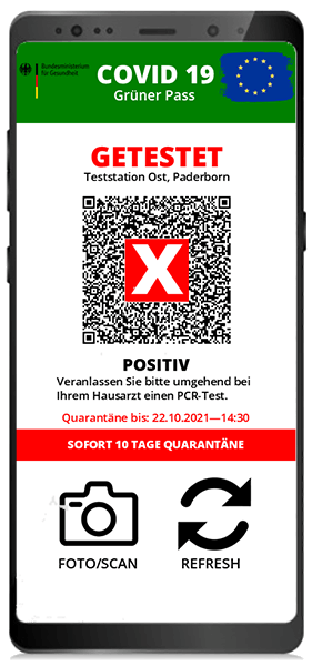 Bei REFRESH erfolgt eine Abfrage in der epidemologischen Datenbank, somit ist das Ergebnis jederzeit verifiziert und aktuell. Missbrauch ist ausgeschlossen. Der User hat nach jedem offiziellen negativen Test, sofort das Ergebnis auf seinem Smartphone.