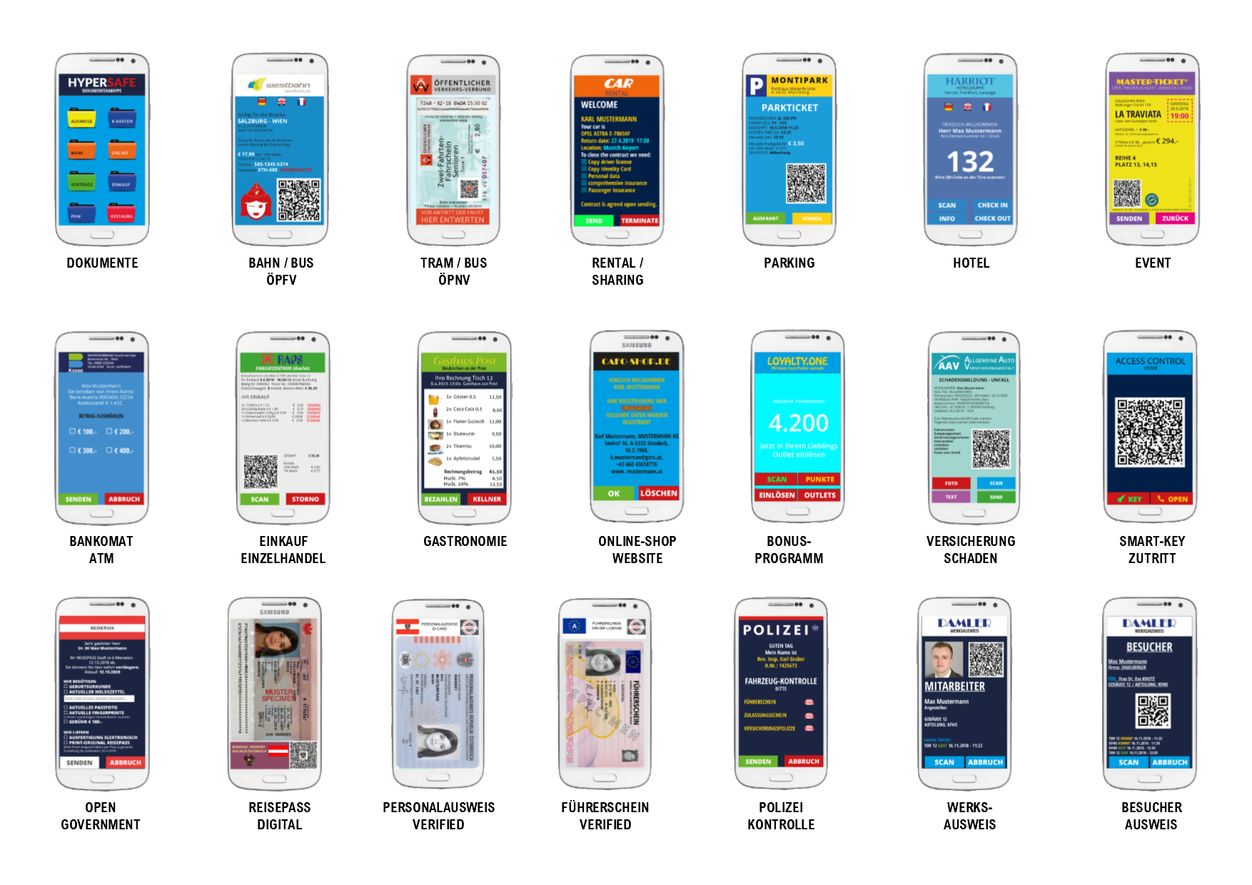 Die Faszination der Hypersafe Lösung liegt in den schier unendlichen Einsatzlösungen. Man kann mit nur einer App im Restaurant bestellen und zahlen, Tickets für Theater, Events, Museum und Öffis kaufen kann, die gleiche App auch für Zutrittskontrolle, digitale Ausweise, Unternehmensausweis oder zum Einkauf in Online Shops einsetzen, usw. So eine App wird dann auch von unzähligen Usern täglich genutzt.